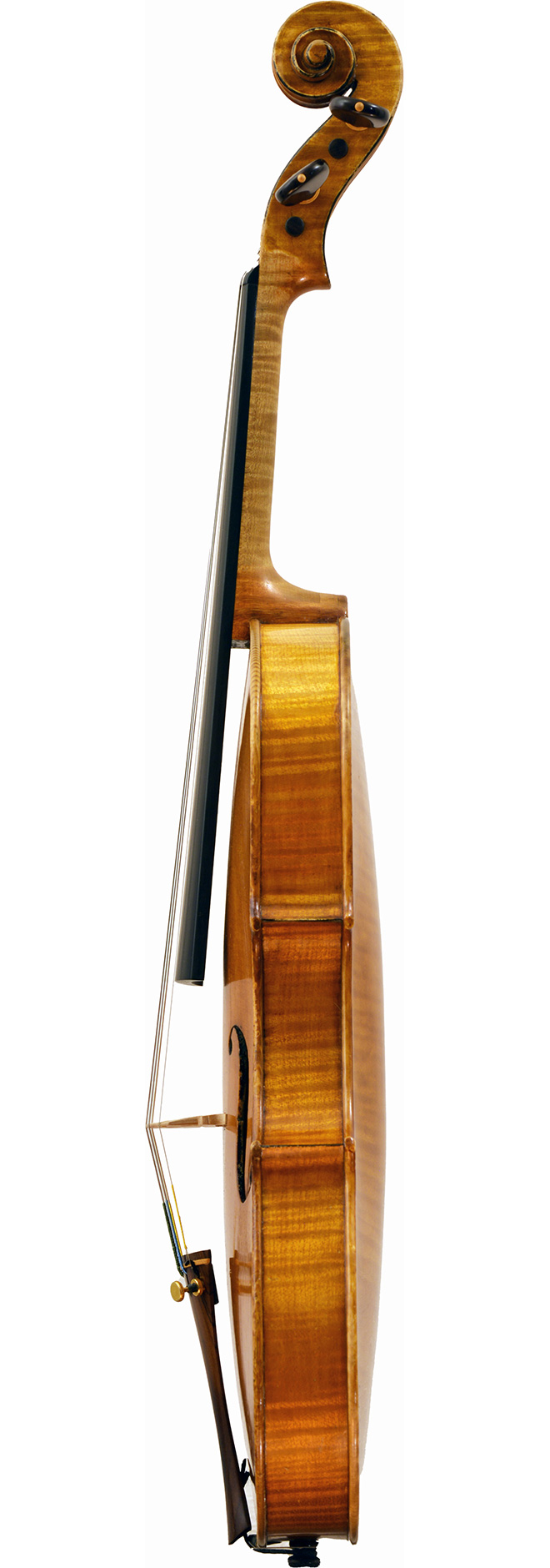 The refined golden colored varnish is one of the characteristics of his later years and adds to the rich expressions. The well-rounded arch, edge work and corners feel like his robust knife work and create dignified beauty of craftwork.