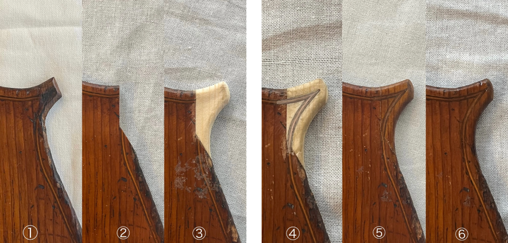 Noted should be that violin restoration is not to follow any solid principles. It should be done with an open mind as if an eternal student would do. A new technique originates directly from information exchanges between craftsmen and ambition to practice various ideas and approaches, and grows with high capability and creative images of each craftsman.